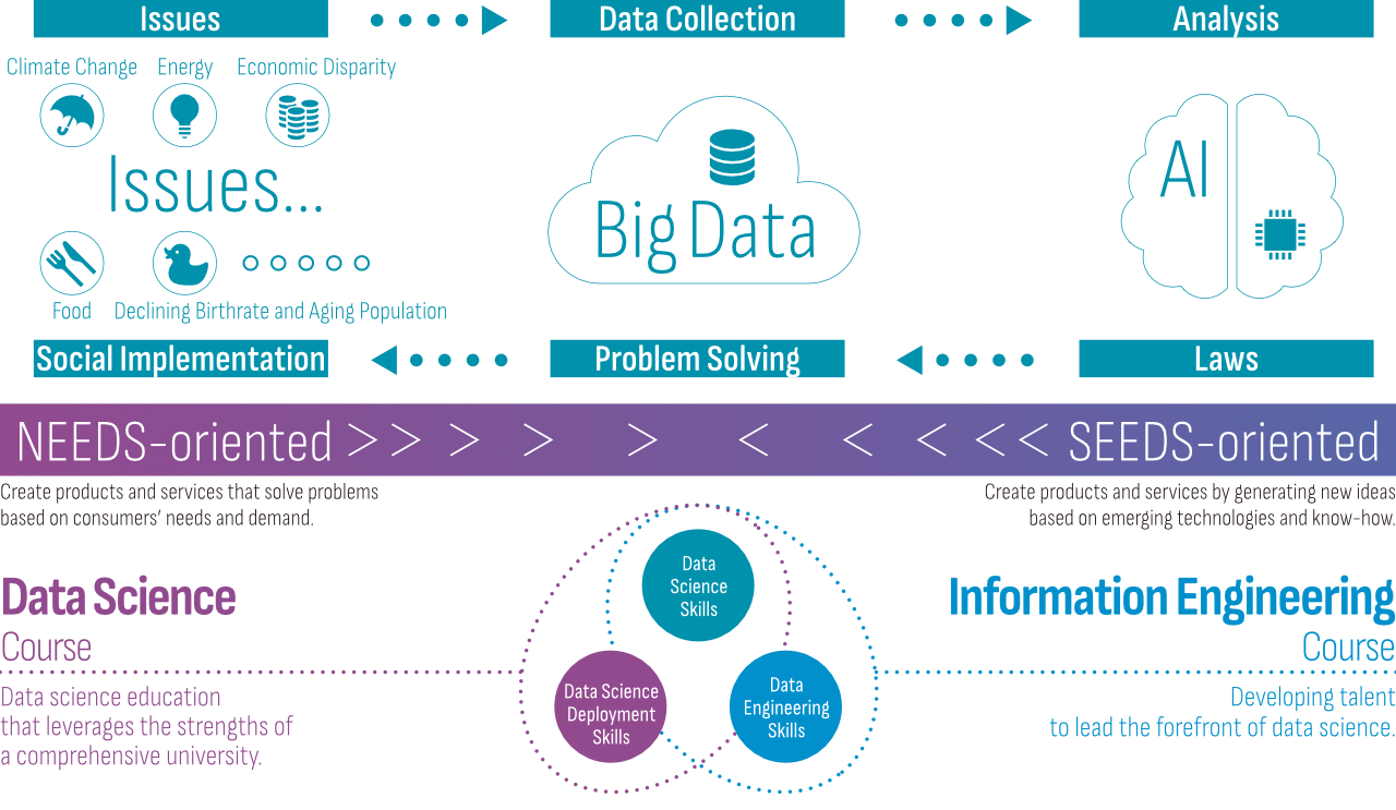 In terms of learning, students build solid foundations in both information engineering and data science, and then go deeper into how AI works through subjects such as machine learning, deep learning, and image processing. It is important to understand both SEEDS and NEEDS—not just one. Students choose their research direction in the third year, so until then I hope you will study broadly and experience both perspectives.